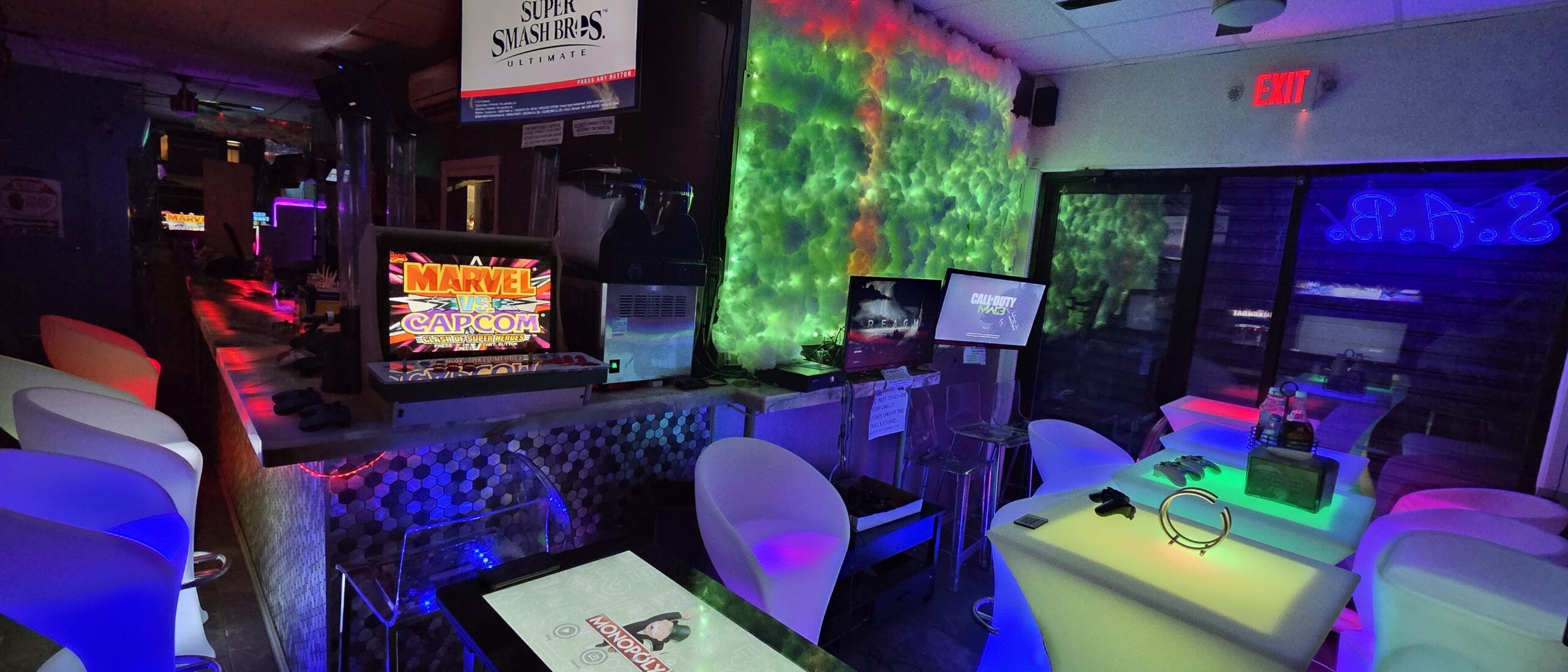5. PRIVATE BAR RESERVATION FOR 10-25 PEOPLE. Play your own music on the Bluetooth home theater system. Led tables and chairs. Systems included: 2 Nintendo switches (super smash bros, Mario Kart, overcooked and more) & 1 switch 2, Xbox 360, Ps3, big arcade with 40,000 games, small arcade with 10k games, Ps2, wireless Nintendo, outrun, Mk2 and 1up infinity game table. Perfect for birthday parties or bachelor parties. Open bar packages start at $35 per person for 3 hours. Available $80-$100 an hour, 3 hour minimum. Please email (su***************@***il.com) if you have any questions. Watch our new bar video here: