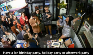 This reservations page is perfect for small groups and large groups: Gaming tables, LAN parties tables, private bar area for 10-25 people and reserve the entire restaurant for up to 50 people. Setups featuring private Nintendo Switch (up to 4 players), Wii U, NES, Nintendo 64, Xbox and xbox 360 and 1up infinity digital board games. Choose from various table reservations accommodating different group sizes.