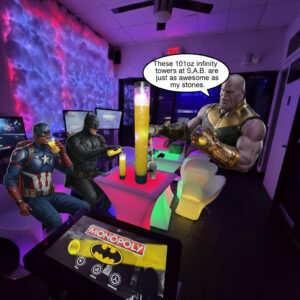 3. 1UP INFINITY DIGITAL BOARD GAME TABLE, up to 4 players. A 32″ touch screen with dozens of games like: Monopoly, scrabble, Uno, Blackjack, Dominoes, Life, chutes and ladders, Operation, Batman monopoly, pool and more. $50. Reservations aren’t required for this. Reservations guarantee the table for your group at a specific time.